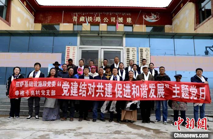 圖為拉薩基礎(chǔ)設(shè)施段黨員代表和申格卡崗村黨員代表合影?!●R生明 攝