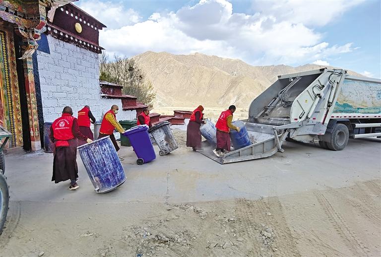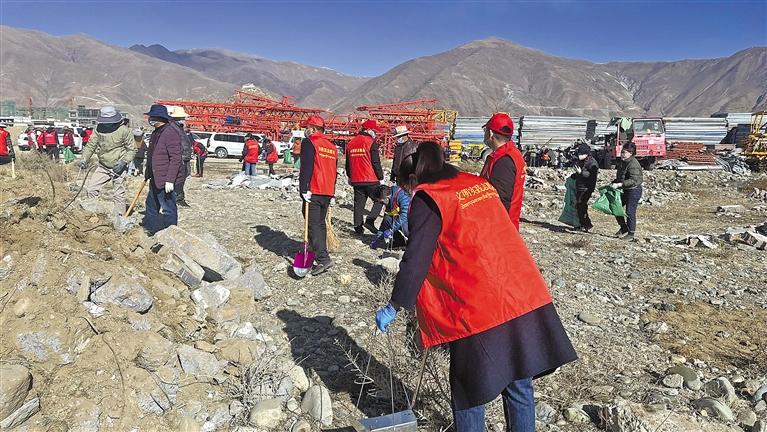 達(dá)孜區(qū)干部職工在清潔衛(wèi)生。拉薩記者站 攝