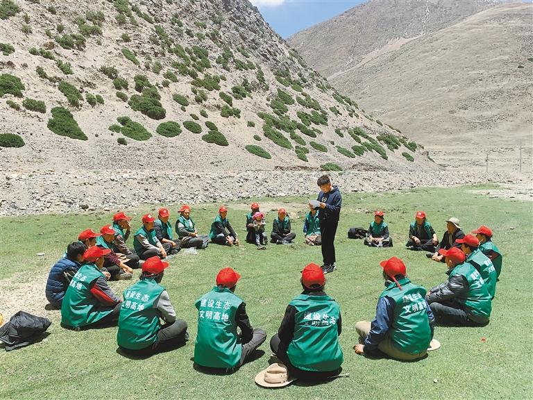 圖為美巴切勤鄉(xiāng)干部向護(hù)林員宣講生態(tài)環(huán)境保護(hù)政策。 記者 楊小娟 攝
