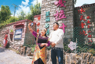 村民巴珍家的藏式小樓,院內(nèi)鮮花簇簇、室內(nèi)溫暖如春,二樓的3個(gè)房間租給旅游企業(yè)用作客房?!耙荒攴孔馐杖胗?萬(wàn)多元,我在旅游公司打工,月工資4000多元,一年收入七八萬(wàn)元,關(guān)鍵是工作生活都在自己村里,簡(jiǎn)直是太方便了?!卑驼浜軡M意現(xiàn)在的生活。旦增達(dá)杰介紹,光房屋租金一項(xiàng),村民戶均年增收3萬(wàn)多元。