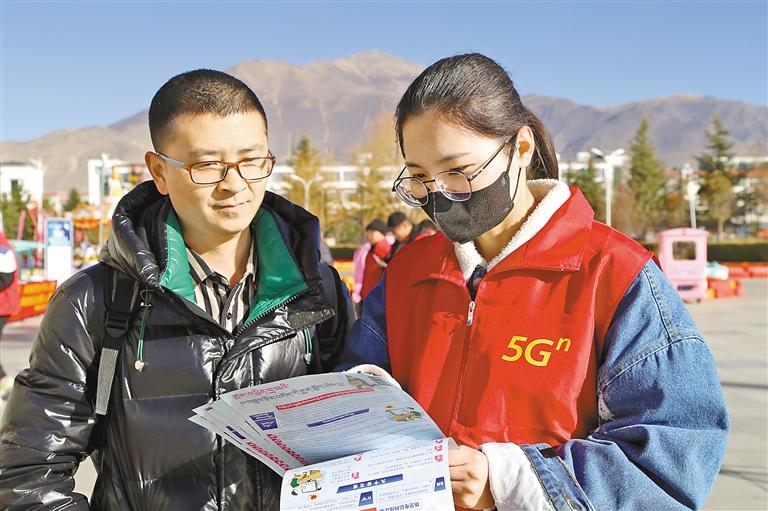 圖為電信、移動、聯通山南分公司工作人員在山南市體育場開展“文明用網 安全用網”專題宣傳教育活動。 記者 武沛濤 攝