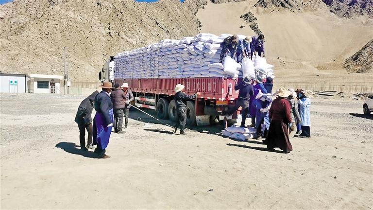 圖為曲水縣才納鄉(xiāng)發(fā)放有機肥。本報記者 格桑倫珠 攝