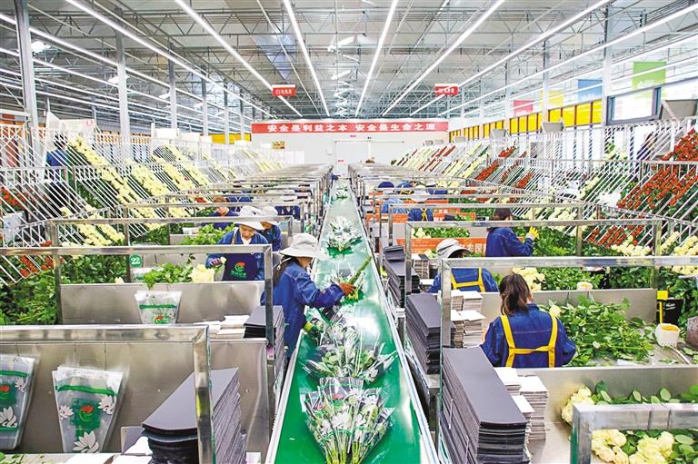 圖為工人在甘肅臨夏百益億農(nóng)國(guó)際鮮花港玫瑰工廠包裝玫瑰(2023年8月15日攝)。新華社發(fā)