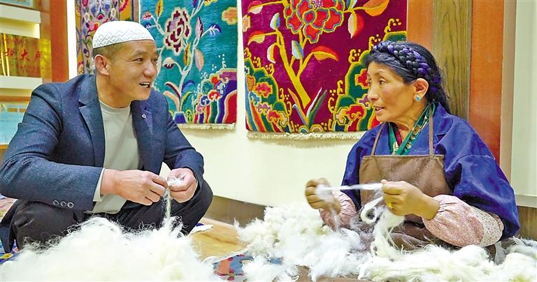圖為江孜縣組織開展民族文化、民族手工業(yè)、民族飲食、民族服裝等沉浸式體驗活動。這是回族群眾在體驗傳統(tǒng)服裝制作工序。