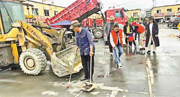 巴宜區(qū)尼池社區(qū)的工作人員身穿紅馬甲,手拿鐵鍬、掃帚等工具對(duì)林芝市快修市場(chǎng)附近的垃圾雜物進(jìn)行清理,“黨建引領(lǐng)聚合力 環(huán)境整治我先行”的標(biāo)語迎風(fēng)飄揚(yáng);