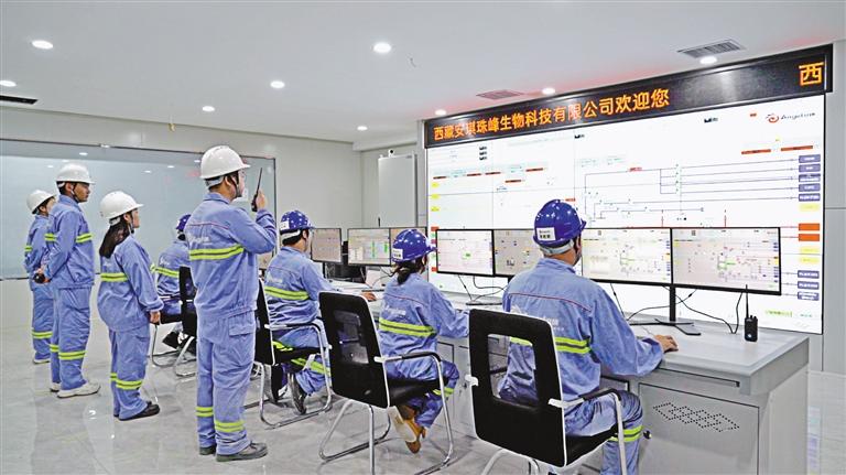 西藏安琪珠峰生物科技有限公司中控室內,工作人員在下達設備調試操作指令。 圖/文 記者 武沛濤 通訊員 陳映午