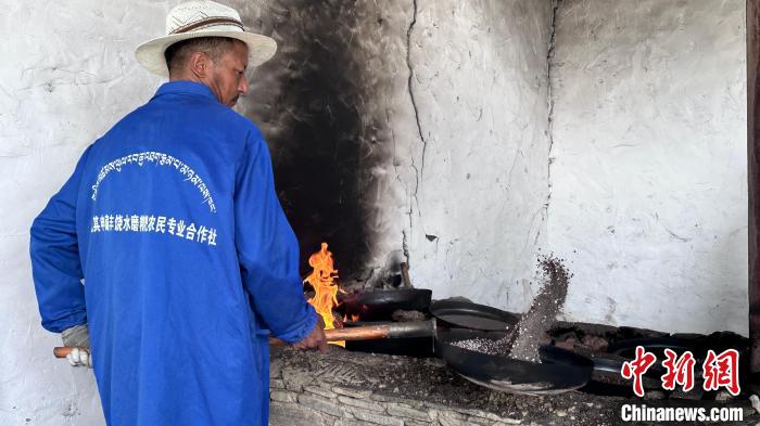 圖為合作社員工正在炒青稞。澤塔雍措 攝