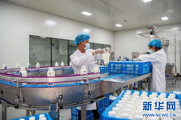 8月21日拍攝的嘎確牧場(chǎng)奶制品流水線(xiàn)。新華網(wǎng) 旦增努布攝