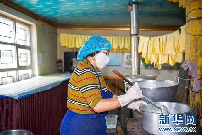 8月21日拍攝的傳統(tǒng)工廠(chǎng)里的工人正在熬煮牛奶。新華網(wǎng) 旦增努布攝