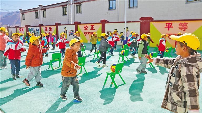 圖為南木林縣多角鄉(xiāng)中心小學(xué)內(nèi)學(xué)生們?cè)谶M(jìn)行戶外活動(dòng)。圖/文 記者 旦增嘎瓦 通訊員 倉(cāng)木拉 平措歐珠