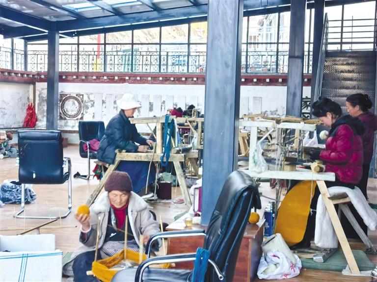 冬日里,走進(jìn)林芝市朗縣登木鄉(xiāng)如字村齊功巾幗民族手工藝傳承加工合作社,織布機(jī)工作的聲音此起彼伏,現(xiàn)場(chǎng)一片繁忙景象。