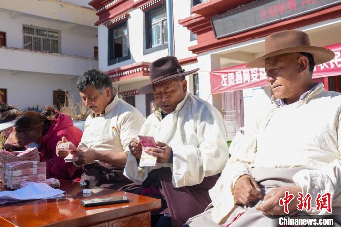 圖為西藏左貢縣亞中村農(nóng)牧民分紅現(xiàn)場(chǎng)。普布朗杰 攝