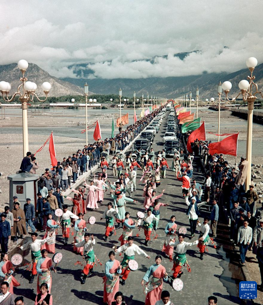 拉薩大橋落成通車(chē)典禮(1965年8月25日攝)。新華社發(fā)