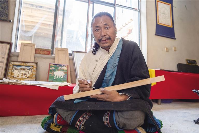 8月13日,記者來(lái)到尼木縣普松鄉(xiāng)曲水村的一個(gè)院落,58歲的斯曲正在窗邊埋頭雕刻,刻刀飛轉(zhuǎn)游走間,精致的花紋在木板上慢慢展現(xiàn),很快雕刻作品便初具雛形。作為普松雕刻第六代傳承人,斯曲自12歲起就在爺爺和爸爸的教導(dǎo)下開始學(xué)習(xí)這門手藝,如今的他早已成為普松雕刻自治區(qū)級(jí)非物質(zhì)文化遺產(chǎn)代表性傳承人。斯曲介紹,普松雕刻步驟煩瑣、工具講究,根據(jù)圖案復(fù)雜程度不同,耗時(shí)從6小時(shí)到3個(gè)月不等,十分考驗(yàn)雕刻者的耐心。