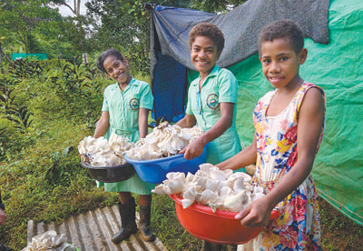中國政府面向斐濟(jì)等太平洋島國推廣菌草技術(shù),推動當(dāng)?shù)亟?jīng)濟(jì)發(fā)展,助力當(dāng)?shù)孛裆纳啤D為在斐濟(jì)奈塔希里乳業(yè)婦女組織菌草技術(shù)示范點,孩子們正在幫忙采菇。