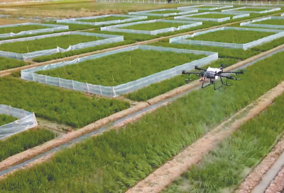 現(xiàn)代化農(nóng)機(jī)設(shè)備在農(nóng)業(yè)生產(chǎn)過程中的運(yùn)用,極大提高了農(nóng)業(yè)生產(chǎn)效率。圖為在印度尼西亞西爪哇省卡拉旺縣的一處水稻試驗田里,中國生產(chǎn)的農(nóng)用無人機(jī)進(jìn)行殺蟲作業(yè)。