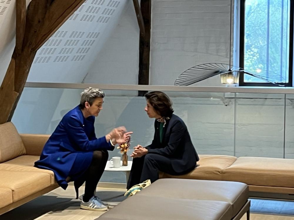 △歐盟競爭事務專員維斯塔格與美國商務部長雷蒙多交流(圖片源自維斯塔格個人社交媒體賬號)