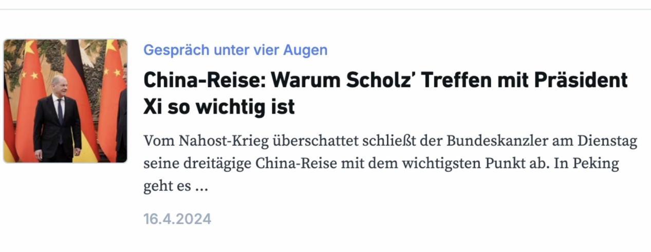 △德國網絡編輯部(RND)網站發(fā)布朔爾茨訪華的評論文章