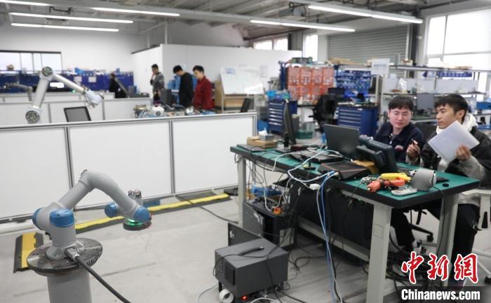 人工智能讓中國制造業(yè)從“追趕者”變身“領(lǐng)跑者”。圖為中科新松的工作人員正在對(duì)機(jī)器手臂進(jìn)行位置標(biāo)定?!埡鄠?攝