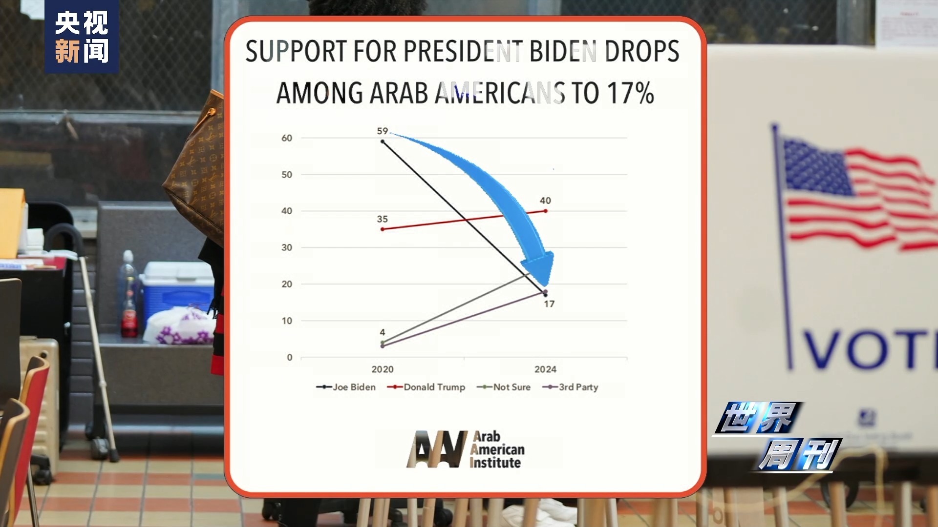 “阿拉伯裔美國人研究所”的數據也顯示,新一輪巴以沖突爆發(fā)后,拜登在阿拉伯裔選民中的支持率已由2020年的59%暴跌至17%。
