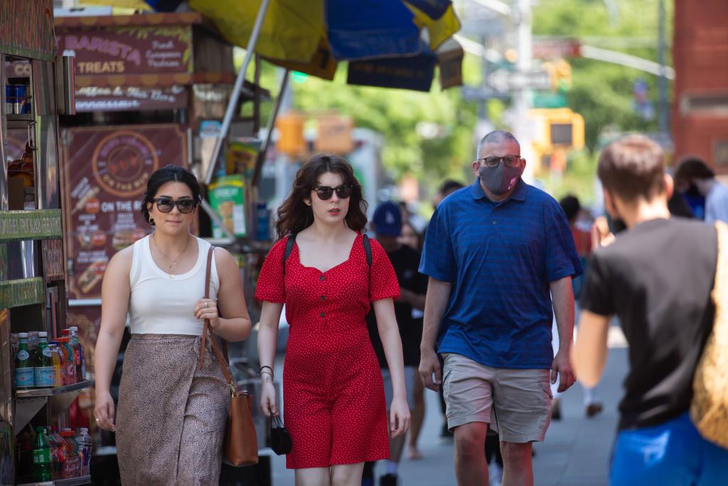 2021年5月19日,人們走在美國紐約街頭。新華社發(fā)(郭克攝)