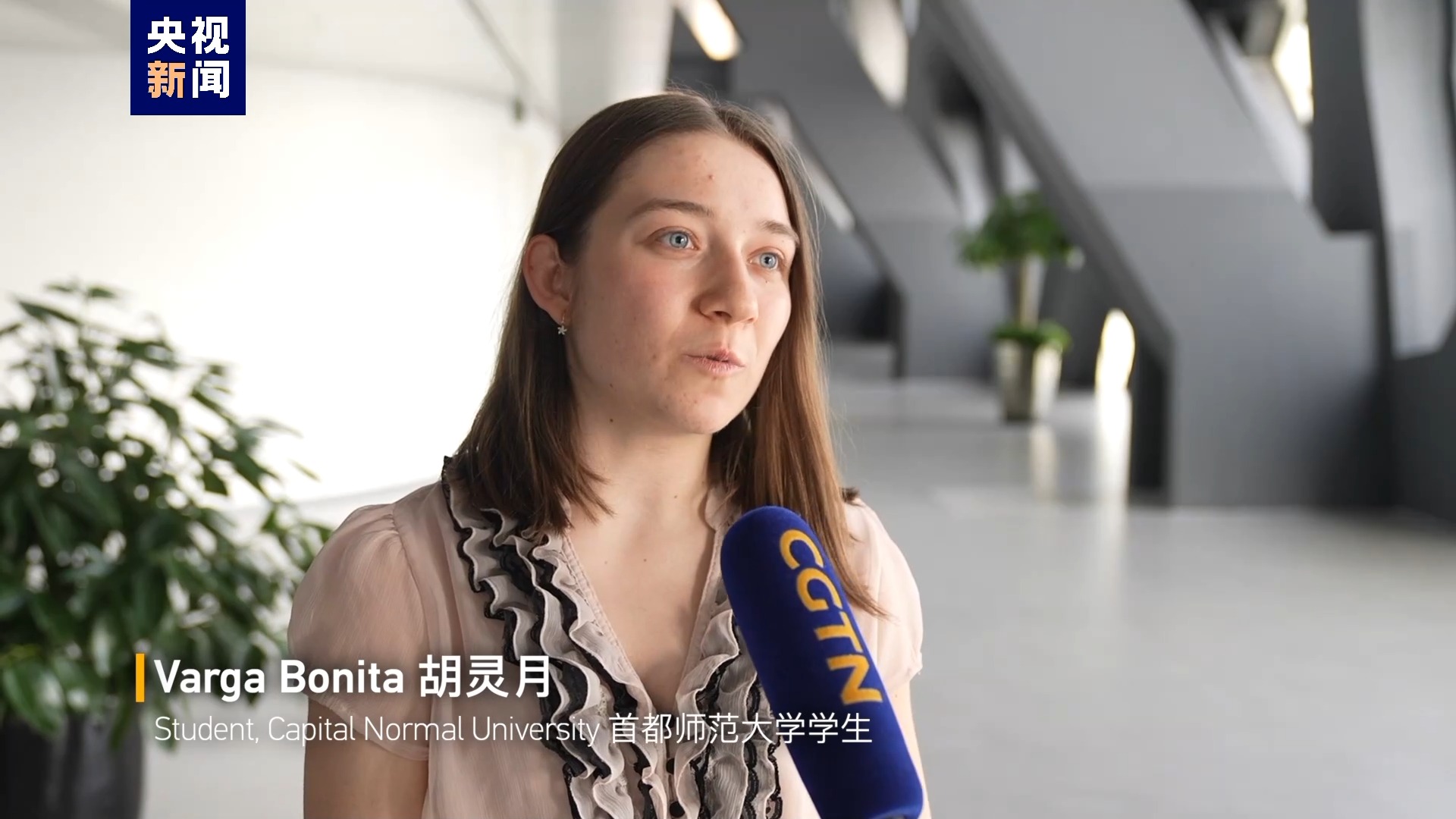 首都師范大學(xué)學(xué)生 瓦爾加·博尼塔 (又名 胡靈月):(這是)我和宋智孝第二次獲得大使獎(jiǎng)學(xué)金。 我們對(duì)此感到非常高興和興奮。 我們想分享我們的喜悅。所以,我們給習(xí)近平主席寫了一封信。
