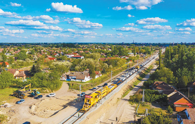 在匈塞鐵路項目現(xiàn)場,鋪軌機(jī)正在塞爾維亞邊境的蘇博蒂察進(jìn)行鋪軌作業(yè)。