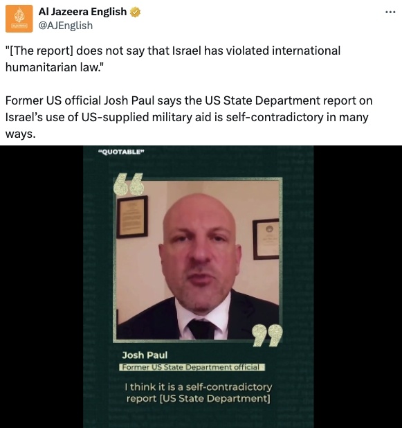 因不滿拜登政府巴以政策而于去年10月辭職的美國國務(wù)院政治軍事事務(wù)局前主任喬希·保羅認(rèn)為,這是一份自相矛盾的報(bào)告,沒有從所確定的事實(shí)中得出合乎邏輯的結(jié)論。