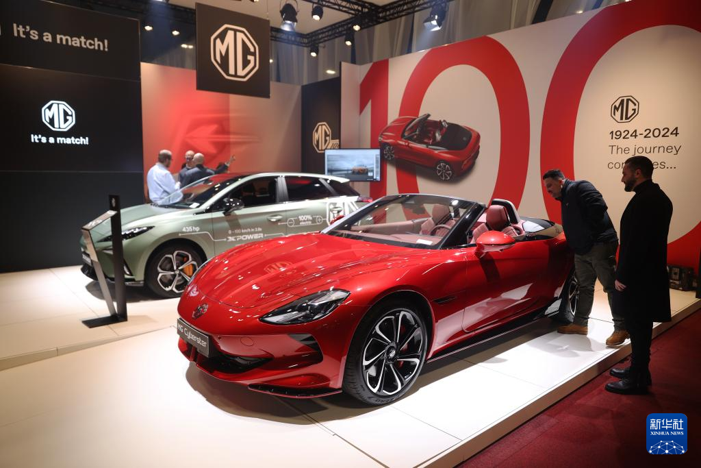 2024年1月17日,人們?cè)诒壤麜r(shí)布魯塞爾舉辦的2024布魯塞爾汽車展上參觀上汽名爵電動(dòng)汽車。新華社記者 趙丁喆 攝