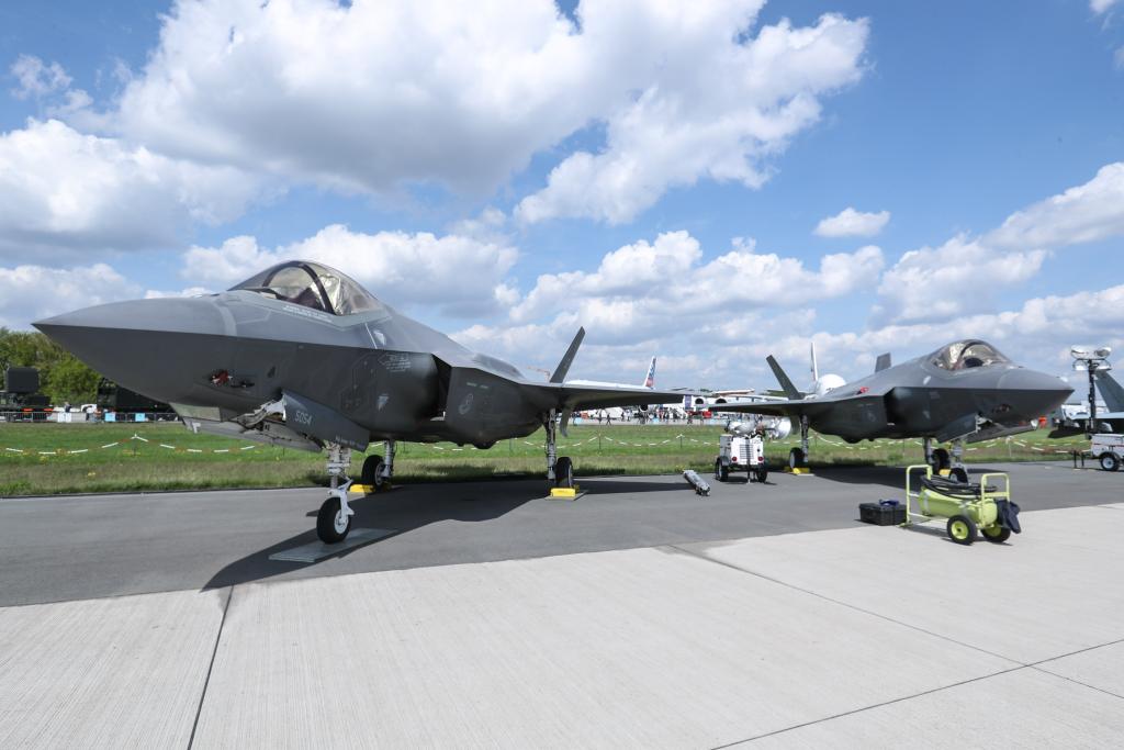 這是2018年4月27日在德國柏林國際航空航天展上拍攝的F-35戰(zhàn)斗機(jī)的資料照片。新華社記者單宇琦攝