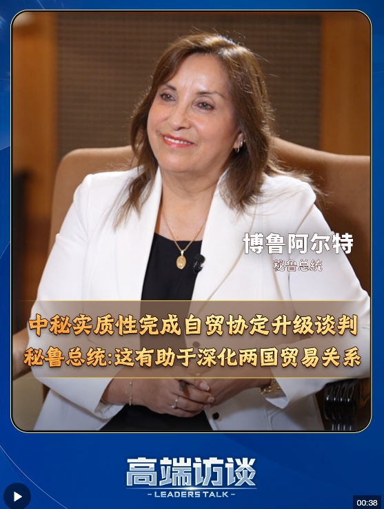 6月28日,中國與秘魯宣布實質(zhì)性完成自貿(mào)協(xié)定升級談判。秘魯總統(tǒng)博魯阿爾特在接受總臺《高端訪談》專訪時表示,中國是秘魯?shù)谝淮筚Q(mào)易伙伴,兩國新簽署的諒解備忘錄,將有助于深化兩國貿(mào)易關(guān)系,進(jìn)一步加強(qiáng)雙邊關(guān)系。