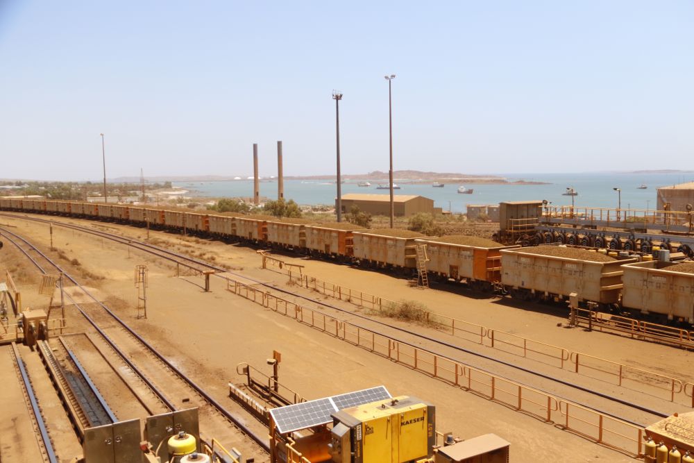 2023年10月20日,在澳大利亞卡拉薩,一列貨運(yùn)列車(chē)正在將鐵礦石運(yùn)往港口裝船。新華社記者郝亞琳攝