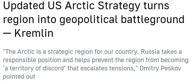 在被問及對美國這份北極戰(zhàn)略報告的看法時,俄羅斯總統(tǒng)新聞秘書佩斯科夫指出,美方報告顯示出對抗色彩,而俄羅斯一直在北極問題上采取負(fù)責(zé)任的立場,"為確保北極不會成為紛爭和局勢緊張地區(qū)做出貢獻(xiàn)"。