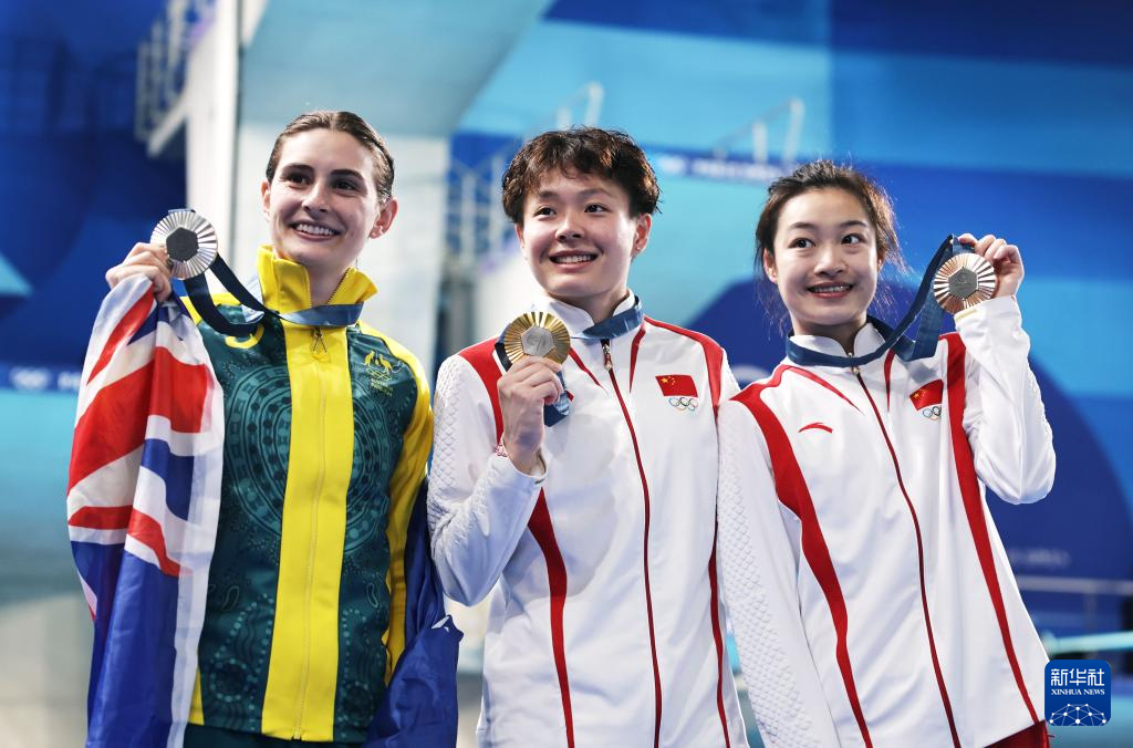 當(dāng)日,在巴黎奧運(yùn)會(huì)跳水項(xiàng)目女子3米板決賽中,中國選手陳藝文獲得金牌,另一名中國選手昌雅妮獲得銅牌。
