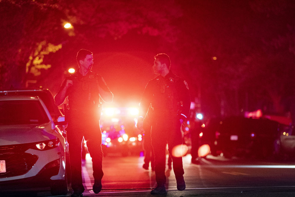 2022年4月22日,警察在美國(guó)首都華盛頓西北部一處街區(qū)發(fā)生的槍擊事件現(xiàn)場(chǎng)工作。新華社記者劉杰攝