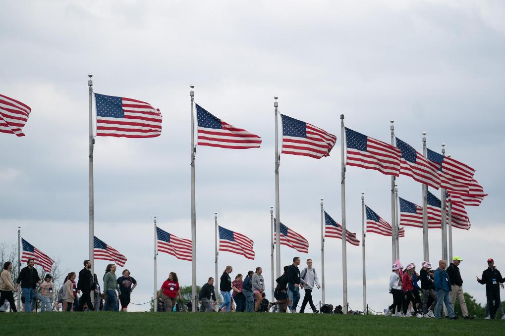 4月25日,游客在美國首都華盛頓的國家廣場游覽。新華社記者劉杰攝