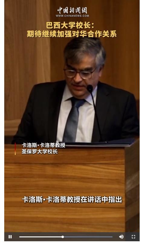 近日,“中巴青年故事會”活動在巴西圣保羅大學(xué)舉行,圣保羅大學(xué)校長卡洛斯·卡洛蒂教授(Carlos Carlotti)在講話中指出,巴中兩國有許多共同之處,在經(jīng)濟、農(nóng)業(yè)、綠色能源、文化、電影等領(lǐng)域,合作潛力巨大,期待未來進一步加強對華合作。(制作 林卓瑋 攝像 郝云暉)