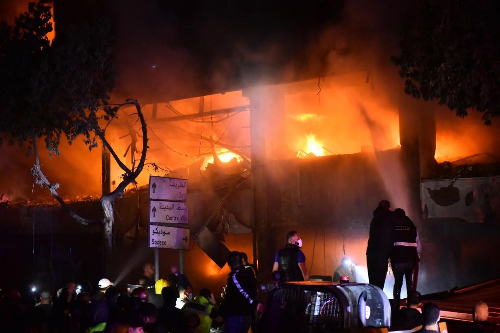這是11月17日在黎巴嫩貝魯特拍攝的以軍襲擊造成的火災。新華社發(fā)