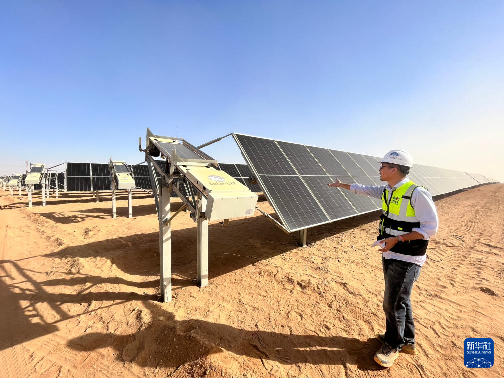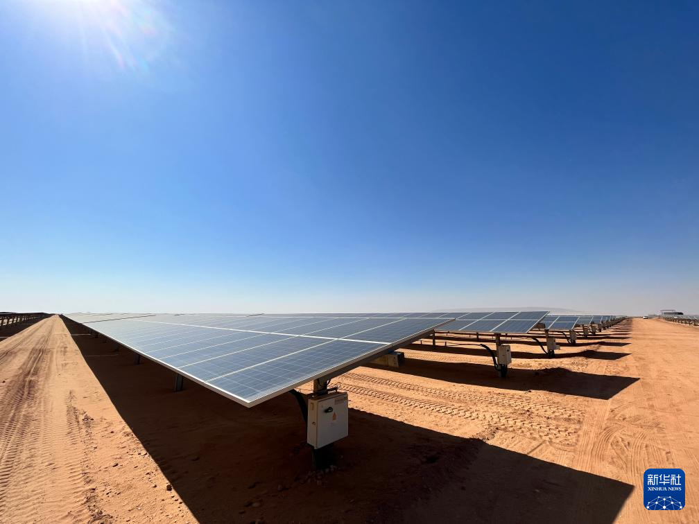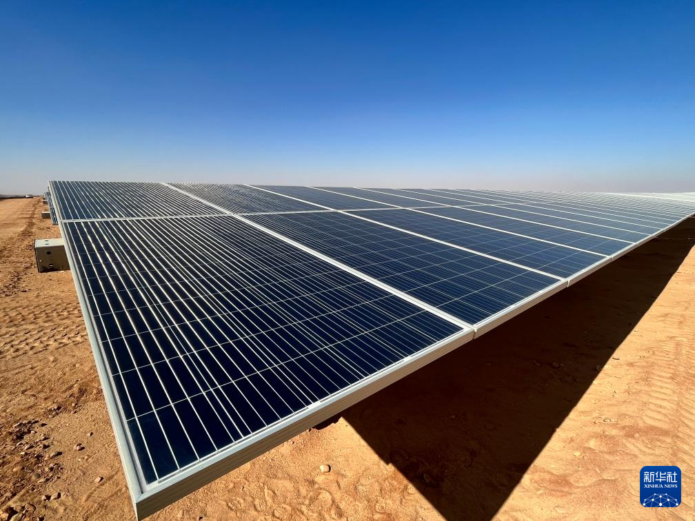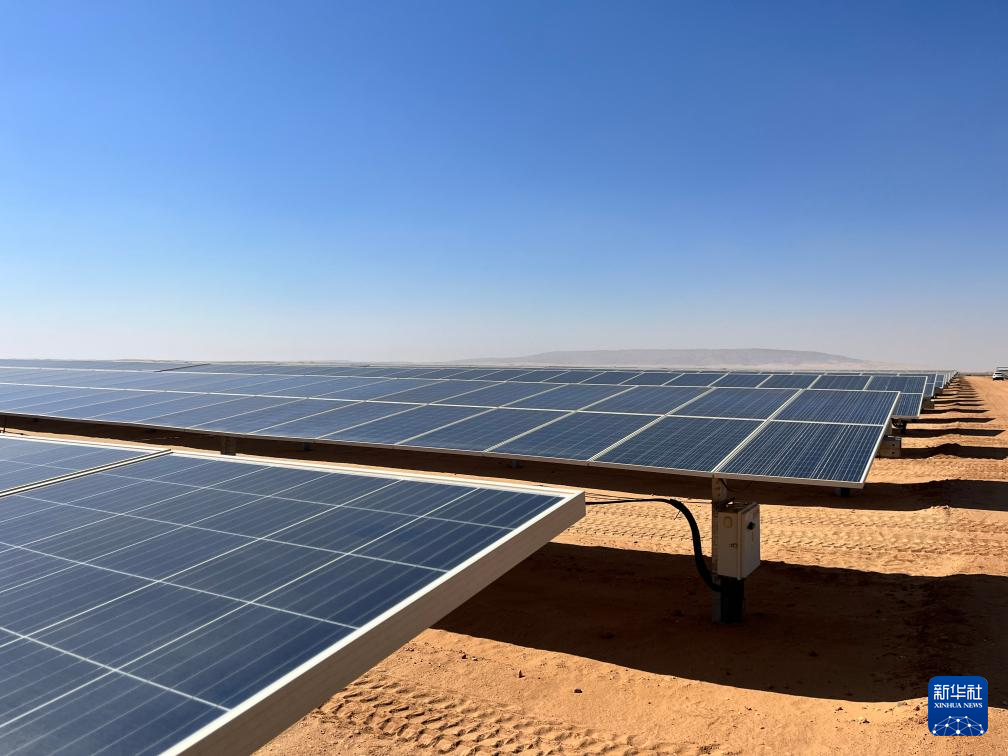 充沛的光照讓埃及具備得天獨(dú)厚的光伏發(fā)電條件。本班光伏產(chǎn)業(yè)園占地面積37平方公里,規(guī)劃建設(shè)40座太陽(yáng)能發(fā)電廠,總裝機(jī)容量約2千兆瓦,目前已有32座發(fā)電廠建成并投入運(yùn)營(yíng)。廣袤的撒哈拉沙漠中,高高架起的光伏板像棋盤(pán)格一樣鋪展開(kāi),從高處俯瞰猶如藍(lán)色海洋。光伏板跟隨太陽(yáng)的位置調(diào)整角度,炙熱的陽(yáng)光被源源不斷轉(zhuǎn)化為電力能源。