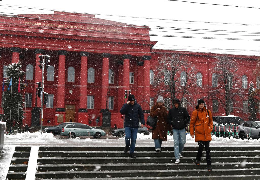 11月21日,在烏克蘭首都基輔,人們經(jīng)過國立基輔大學。新華社發(fā)(羅曼·佩圖什科夫攝)