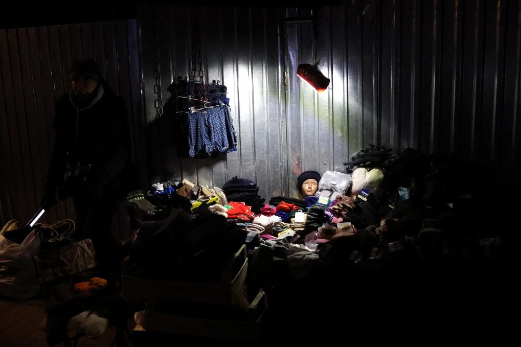 12月4日,在烏克蘭基輔街頭,一處貨攤使用充電燈照明。新華社發(fā)(彼得·德魯克攝)