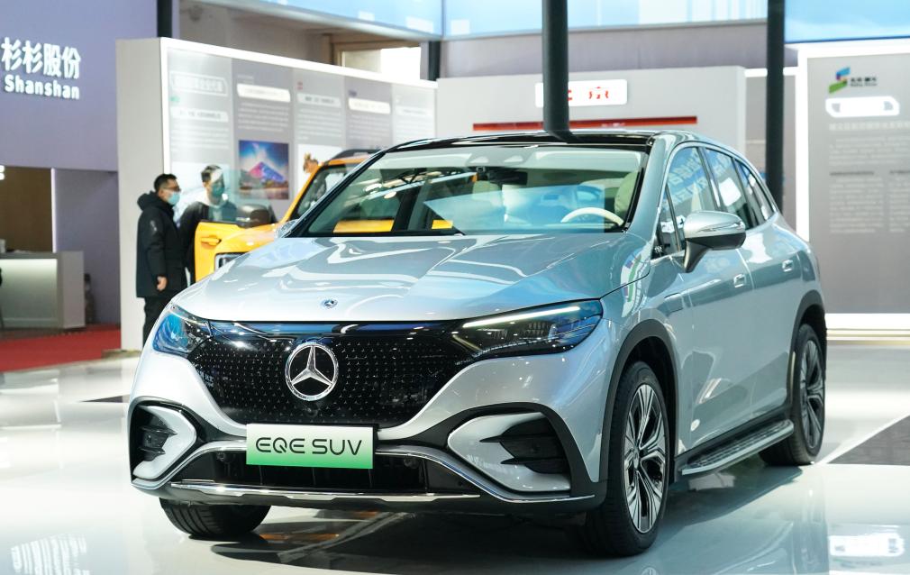 2023年11月30日在北京舉辦的首屆中國國際供應鏈促進博覽會智能汽車鏈展區(qū)拍攝的奔馳EQE SUV。新華社記者任超攝