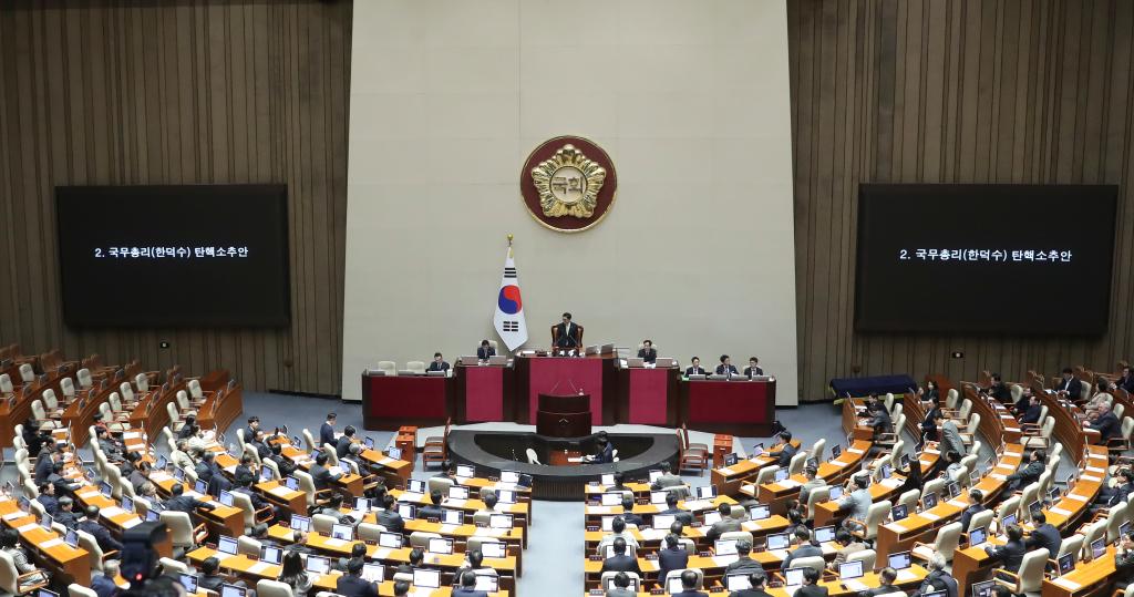 韓國(guó)最大在野黨共同民主黨26日向國(guó)會(huì)提請(qǐng)彈劾韓德洙,國(guó)會(huì)27日就此進(jìn)行表決。與彈劾總統(tǒng)需獲國(guó)會(huì)300名議員中三分之二贊成不同,彈劾總理僅需過(guò)半數(shù)即151名議員贊成即可通過(guò)。而在野黨陣營(yíng)在國(guó)會(huì)擁有192個(gè)議席,執(zhí)政黨只有108個(gè)議席。