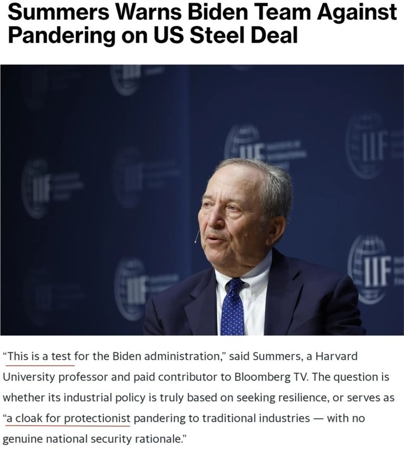 早在去年收購(gòu)案推進(jìn)過(guò)程中,美國(guó)前財(cái)政部長(zhǎng)勞倫斯·薩默斯就曾表態(tài)認(rèn)為,日鐵收購(gòu)美鋼并不會(huì)構(gòu)成“國(guó)家安全風(fēng)險(xiǎn)”。
