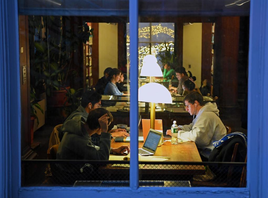 2019年12月7日,在美國(guó)紐約,哥倫比亞大學(xué)學(xué)生在圖書館自習(xí)。新華社記者李睿攝