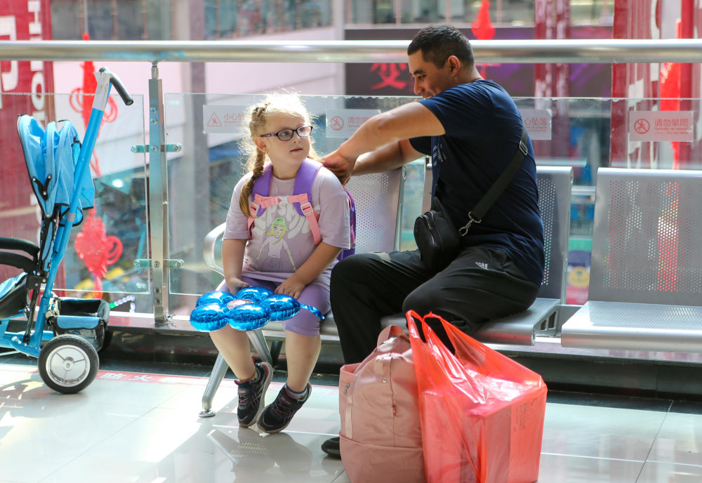 2024年7月26日,在中哈霍爾果斯國(guó)際邊境合作中心,來自哈薩克斯坦的游客在購(gòu)物后休息。新華社記者林立平攝