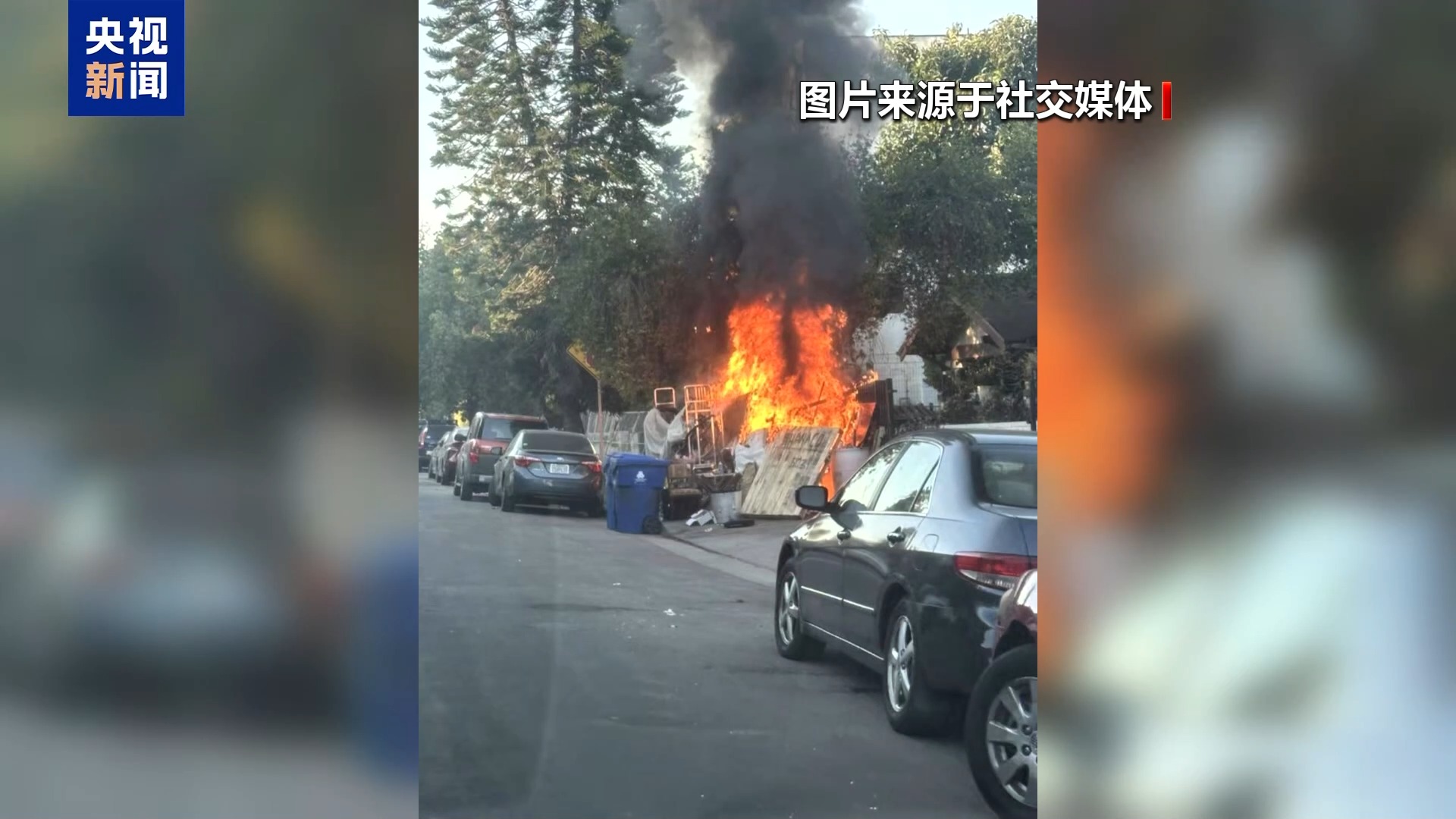 央視記者 劉驍騫:其次,我觀察到,小型的人為縱火案頻繁出現(xiàn)。這幾天,洛杉磯警方在市中心發(fā)現(xiàn)了好幾起疑似人為縱火的案件。例如,有人故意點(diǎn)燃街邊的垃圾,或者點(diǎn)燃市區(qū)道路邊的草叢。除了官方通報(bào)的情況外,我發(fā)現(xiàn)在洛杉磯本地的社交媒體上,甚至是我個(gè)人所處的社群信息共享頁面,都有不少居民講述甚至拍下他們發(fā)現(xiàn)疑似縱火的情況。這些社群也呼吁民眾在發(fā)現(xiàn)明火后立刻報(bào)警或者當(dāng)面阻止撲滅。