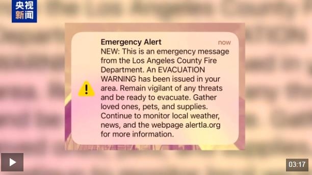 據(jù)美國有線電視新聞網(wǎng)報(bào)道,當(dāng)?shù)貢r(shí)間10日晚,加州大學(xué)洛杉磯分校發(fā)表聲明,要求該校學(xué)生為可能的疏散做好準(zhǔn)備,該大學(xué)中有超過4.6萬名學(xué)生。聲明中說,因帕利塞德山火,加州大學(xué)洛杉磯分校附近地區(qū)已經(jīng)發(fā)布了疏散警告。校方要求校內(nèi)人員保持警惕,隨時(shí)準(zhǔn)備疏散。