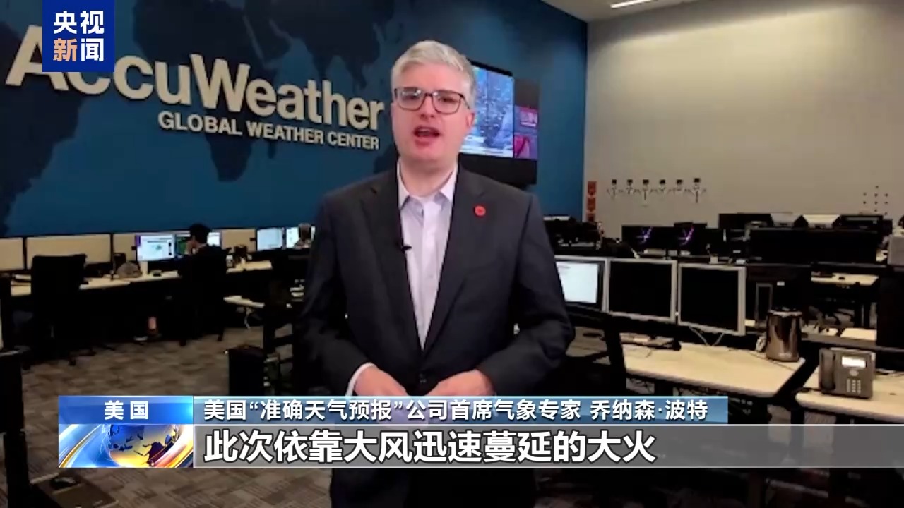 美國“準(zhǔn)確天氣預(yù)報”公司首席氣象專家 喬納森·波特:我們的初步預(yù)測是,此次依靠大風(fēng)迅速蔓延的大火在加州南部造成的財產(chǎn)經(jīng)濟損失,可以達到1350億至1500億美元。