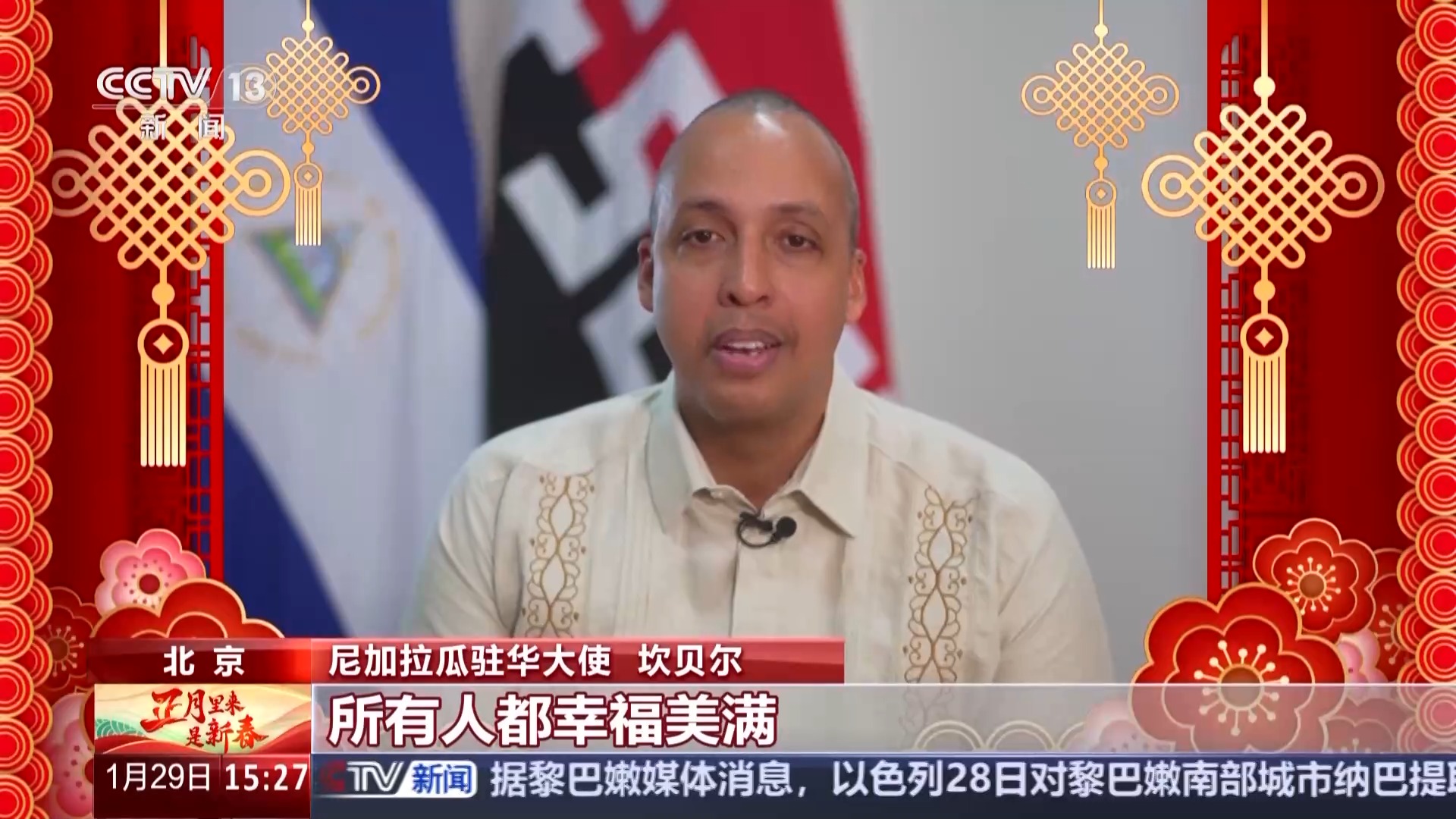 尼加拉瓜駐華大使 坎貝爾:在新的一年里,我們的計劃是繼續(xù)在已有成就的基礎上繼續(xù)發(fā)展,特別是我們將致力于促進兩國大學之間的更多合作、締結(jié)更多姐妹城市,推動更多的投資和貿(mào)易。當然,尼加拉瓜是共建“一帶一路”倡議、全球發(fā)展倡議和全球文明倡議的支持者。我們都致力于在國際舞臺上,建設一個更加多極化的世界。習近平主席對構(gòu)建人類命運共同體進行了非常清晰的闡述。尼加拉瓜完全支持這一理念,我們將為實現(xiàn)這一目標而不懈努力。